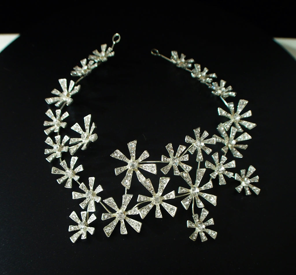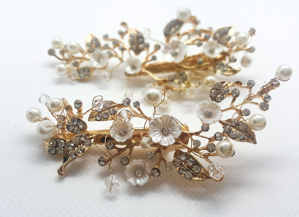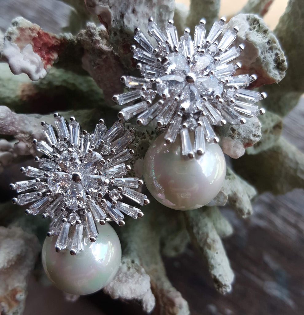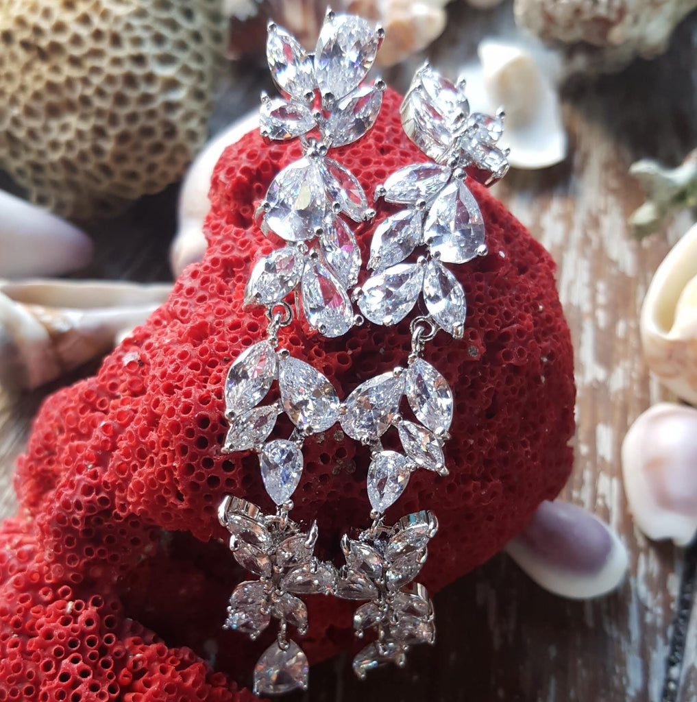 Crystal petals and pearls in silver or rose gold frame with beard drop earrings
